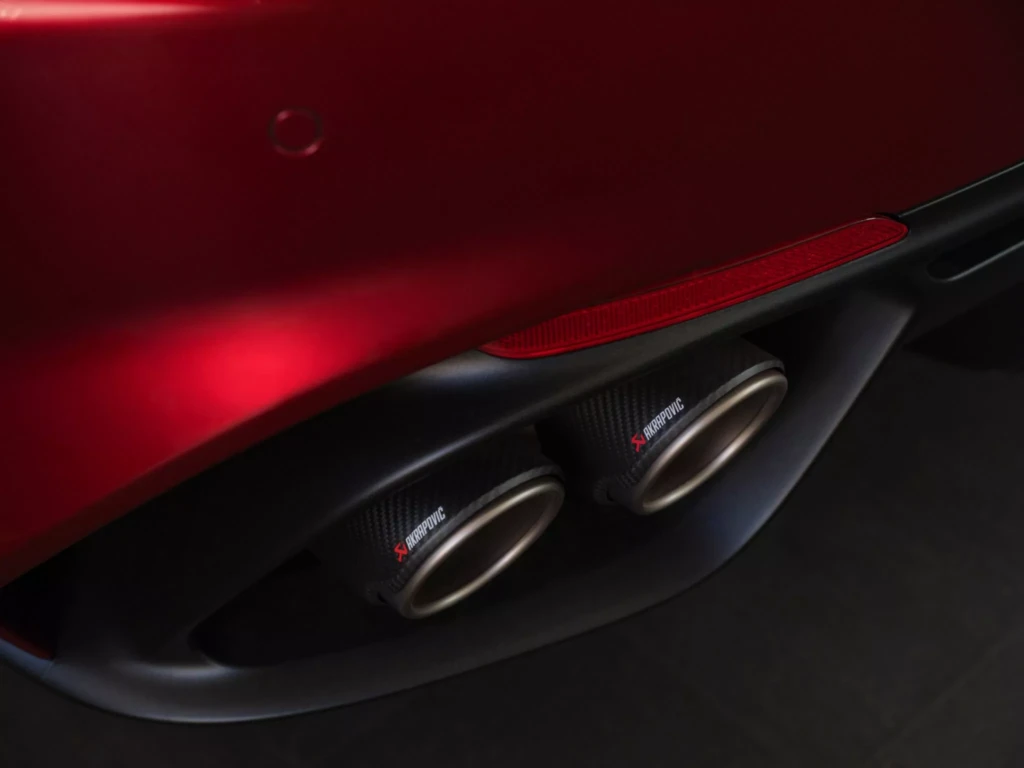 Під капотом — знайомий V6 2.9 потужністю 520 к.с. з фірмовим звучанням Akrapovič у базі. У стандарті також — карбон-керамічні гальма з червоним логотипом Alfa Romeo.