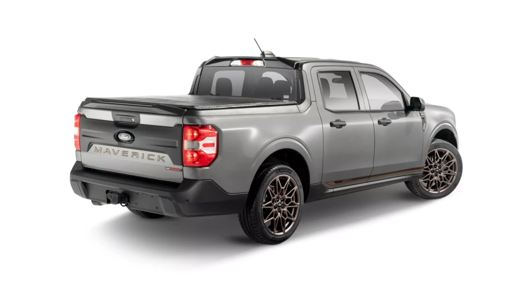 Maverick 300T оснащён заниженной спортивной подвеской, выхлопной системой Borla, 20-дюймовыми бронзовыми дисками от Mustang Mach-E и шинами Pirelli P Zero Elect (245/45 R20). Визуальный стиль подчеркивают бронзовые акценты и шильдики.