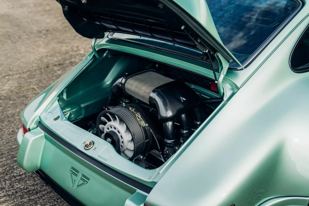 Работа над проектом заняла 18 месяцев. Кузов рестомода получил карбоновые панели цвета Ice Green Metallic с хромированными акцентами, а конструкция усилена новыми швами.